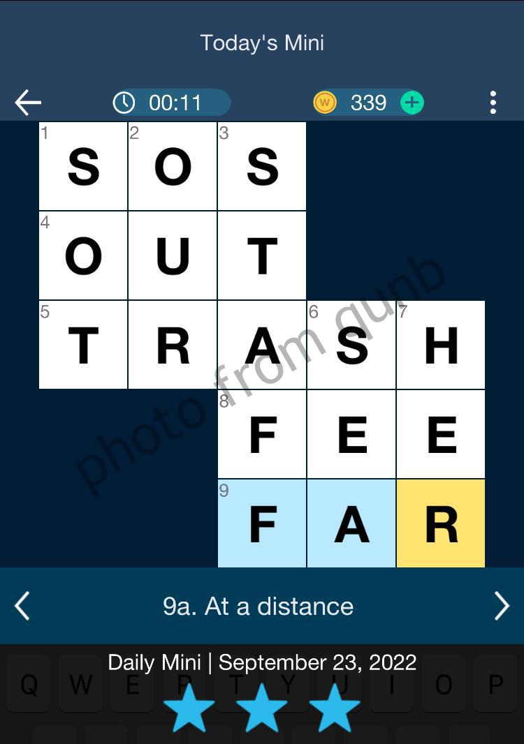 Ones being pointed to at a distance NYT Crossword Clue Answer You came here to get ONES BEING POINTED TO AT A DISTANCE NYT Crossword Clue Answer THOSE ads This clue was last seen on NYTimes January 18 2023 Puzzle. If you are done solving this clue take a look below to the other clues found on today's puzzle in case you may need help with any of them. Stat for a distance runner Crossword Clue Answers, Crossword Solver This crossword clue Stat for a distance runner was discovered last seen in the February 13 2023 at the USA Today Crossword. The crossword clue possible answer is available in 4 letters. This answers first letter of which starts with P and can be found at the end of E. We think PACE is the possible answer on this clue. From ___ (at a distance) Crossword Clue Answers, Crossword Solver This crossword clue From ___ (at a distance) was discovered last seen in the May 2 2022 at the Crosswords With Friends Crossword. The crossword clue possible answer is available in 4 letters. This answers first letter of which starts with A and can be found at the end of R. We think AFAR is the possible answer on this clue. At a distance crossword clue - DailyThemedCrosswordAnswers.com At a distance crossword clue Please find below the At a distance crossword clue answer and solution which is part of Daily Themed Crossword May 16 2021 Answers. Many other players have had difficulties withAt a distance that is why we have decided to share not only this crossword clue but all the Daily Themed Crossword Answers every single day.