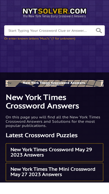 New York Times Mini Crossword Answers [Updated Daily] This page will be updated every single day with the latest NYT Mini Crossword Puzzle Answers. A 5×5 puzzle edited by Joel Fagliano, The Mini is a sensational crossword puzzle game by the New York Times. You can play it online at the official website or through the iOS and Android App.